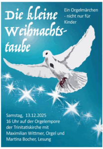 Die Proben für das Krippenspiel finden dann am SA, 6.12., 13.12., 20.12. und DI, 23.12. jeweils von 10-11:30Uhr statt.